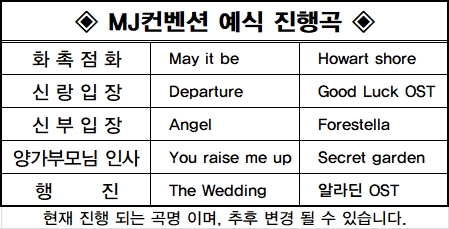 예식 기본음원 BGM MJ컨벤션에 어울리는 곡으로 선별 하였습니다.